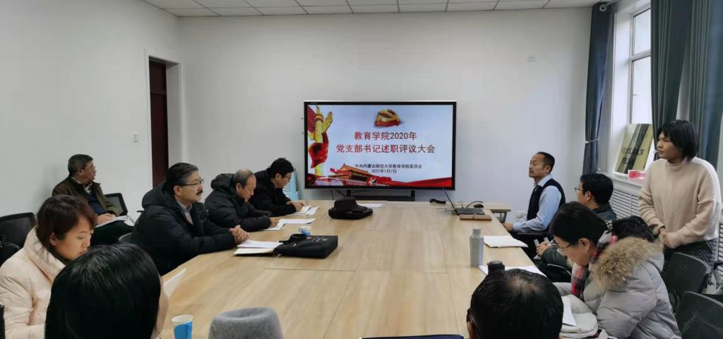 2021年1月7日下午,教育学院党委于赛罕校区文史楼206会议室召开2020年度党支部书记述职会议,学院党委委员及各党支部书记参加会议,会议由学院党委副书记斯琴满都呼主持,学院党委书记铁木尔、副书记斯琴满都呼对各个支部进行了点评。