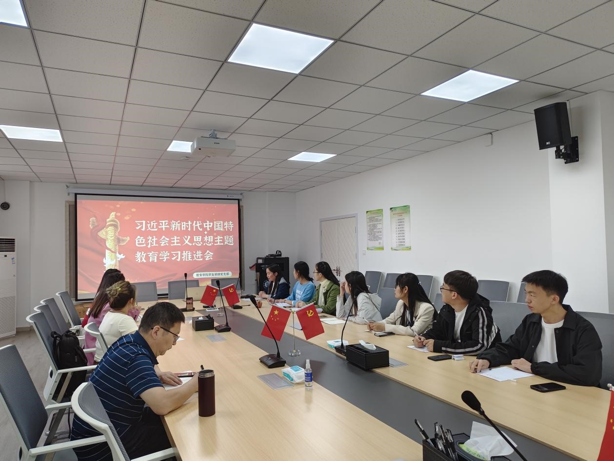 2023年5月10日,教育学院学生第四党支部在盛乐校区学院楼A406会议室召开学习贯彻习近平新时代中国特色社会主义思想主题教育推进会,会议由学生第四党支部书记苏日娜主持,教育学院党委副书记斯琴满都呼以及党支部全体党员结合线上线下参加了此次会议。