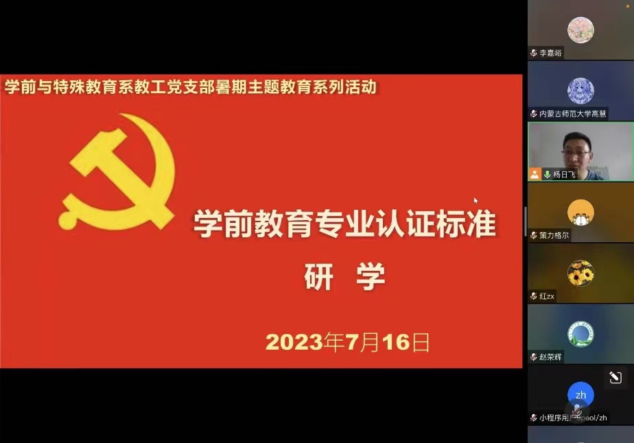 根据校院两级党委关于持续推进主题教育,推动主题教育走深走实的要求,7月16日晚,在学院教学工作会议结束以后,学前与特殊教育系教工党支部围绕学前教育专业认证工作,组织开展学前教育专业认证标准研学主题教育活动。支部全体党员及系部分教师参加了此次活动,活动由支部书记杨日飞同志主持。