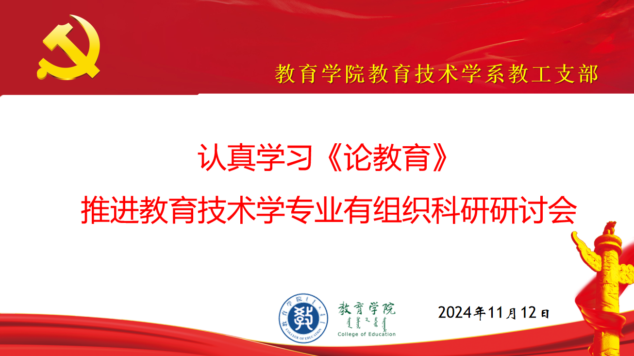 教育技术系举办“认真学习《论教育》——推进教育技术学专业有组织科研”教工支部主题活动