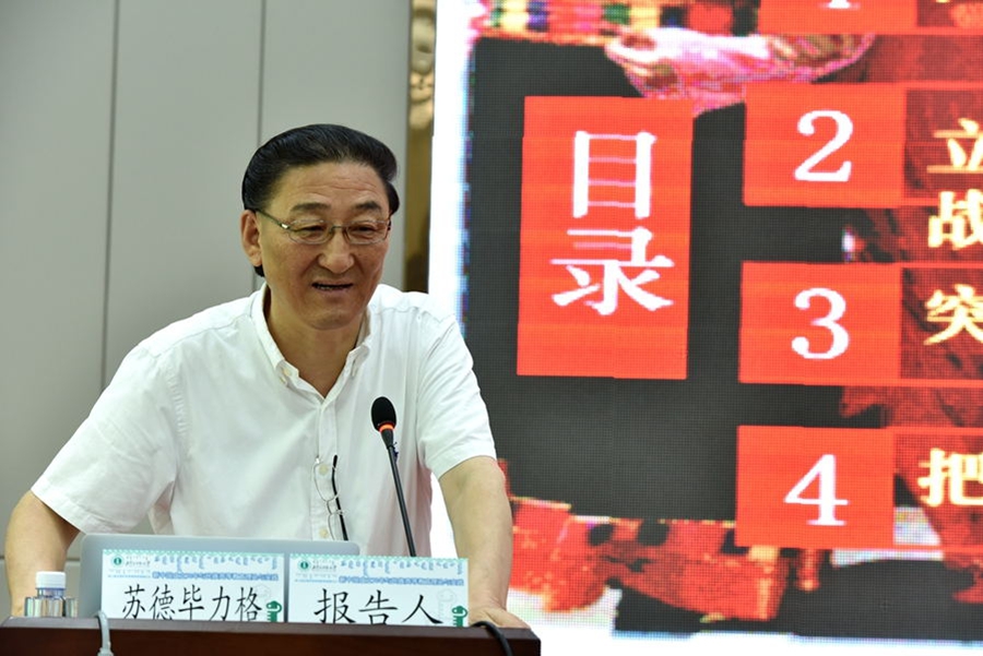 中央民族大学教育学院党委书记、博士生导师苏德毕力格作题为《回眸与前瞻:新时代民族高等教育发展之路》的报告。