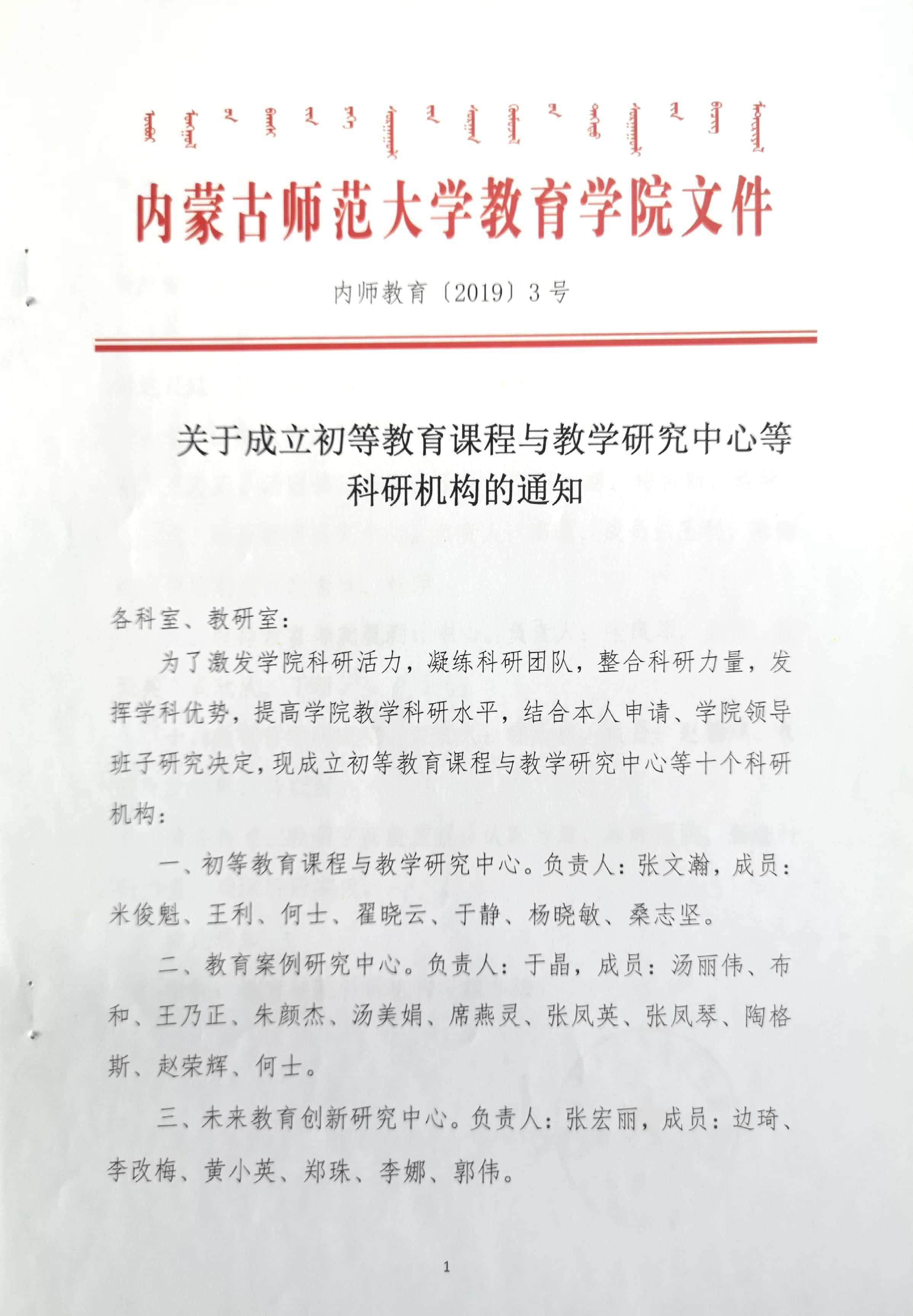 关于成立初等教育课程与教学研究中心等科研机构的通知
