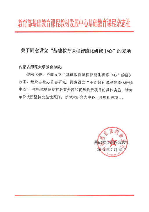 目前,教育部基础教育课程教材发展中心基础教育课程杂志社仅在北京师范大学珠海校区和我校设立了基础教育课程智能化研修相关机构。