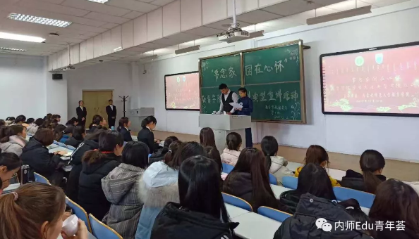 为深入贯彻落实习近平新时代中国特色社会主义思想和党的十九大精神,贯彻落实全国、全区宣传思想工作会议和全区高校思想政治工作会议精神,教育和引导广大青年学生爱国、担当、奋斗,争做担当民族复兴大任的时代新人,为学校第十一次党代会和庆祝中华人民共和国成立70周年营造良好氛围,2018年12月12日下午, 由KY.COM主办的“常念家国在心怀”学生先进典型宣讲活动在行知楼122教室隆重举行。教育学院优秀学生——王丽坤、路媱、乔必伟、莫其叶乐四位同学出席此次宣讲并与同学们交流作为一名优秀学子的学习感悟和建议。