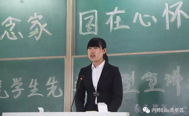 路媱同学首先向我们分享了两个成语——厉兵秣马与砥砺前行!又讲述了曾经那段苦辣日子:“实际上大学并不是像很多人所说的那么轻松,学习,依然是一个砥砺前行的过程。以点看线,中国梦在我们心中,亦是我们的梦想,但是不要忘了梦想虽然遥远,却不可以止步不前!”