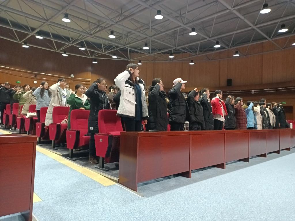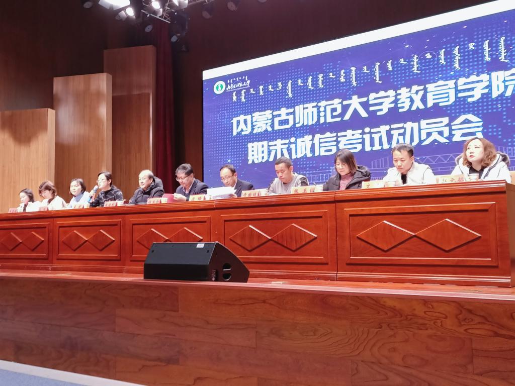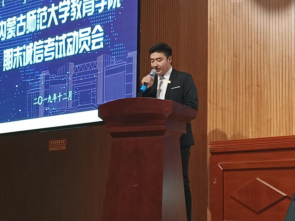 为严肃考风考纪,加强学生的诚信教育,12月9日14:30我院在图书馆二楼报告厅召开教育学院期末诚信考试动员大会,教育学院党委书记铁木尔、院长米俊魁、党委副书记兼副院长王利、副院长边琦、学工组于国佳老师、孙悦老师、张玉老师、苏日娜老师、赵元韬老师、文山老师、教务办李嘉峪老师、2018级和2019级部分学生参加本次大会。大会由王利副书记主持。