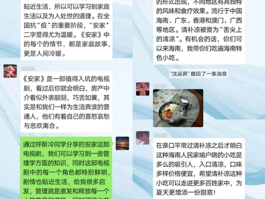 为深入学习贯彻习近平总书记关于新冠肺炎疫防控工作重要讲话指示精神,响应国家、自治区和学校团委的号召,我院各团支部举行以“云端相聚心连心”为主题的团日活动。各团支部通过分享假期趣事、家乡美景、影视推荐等活动来展示同学们丰富的假期生活。