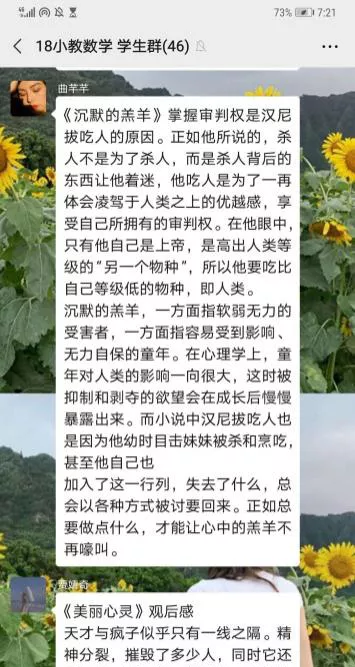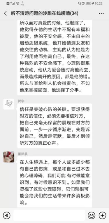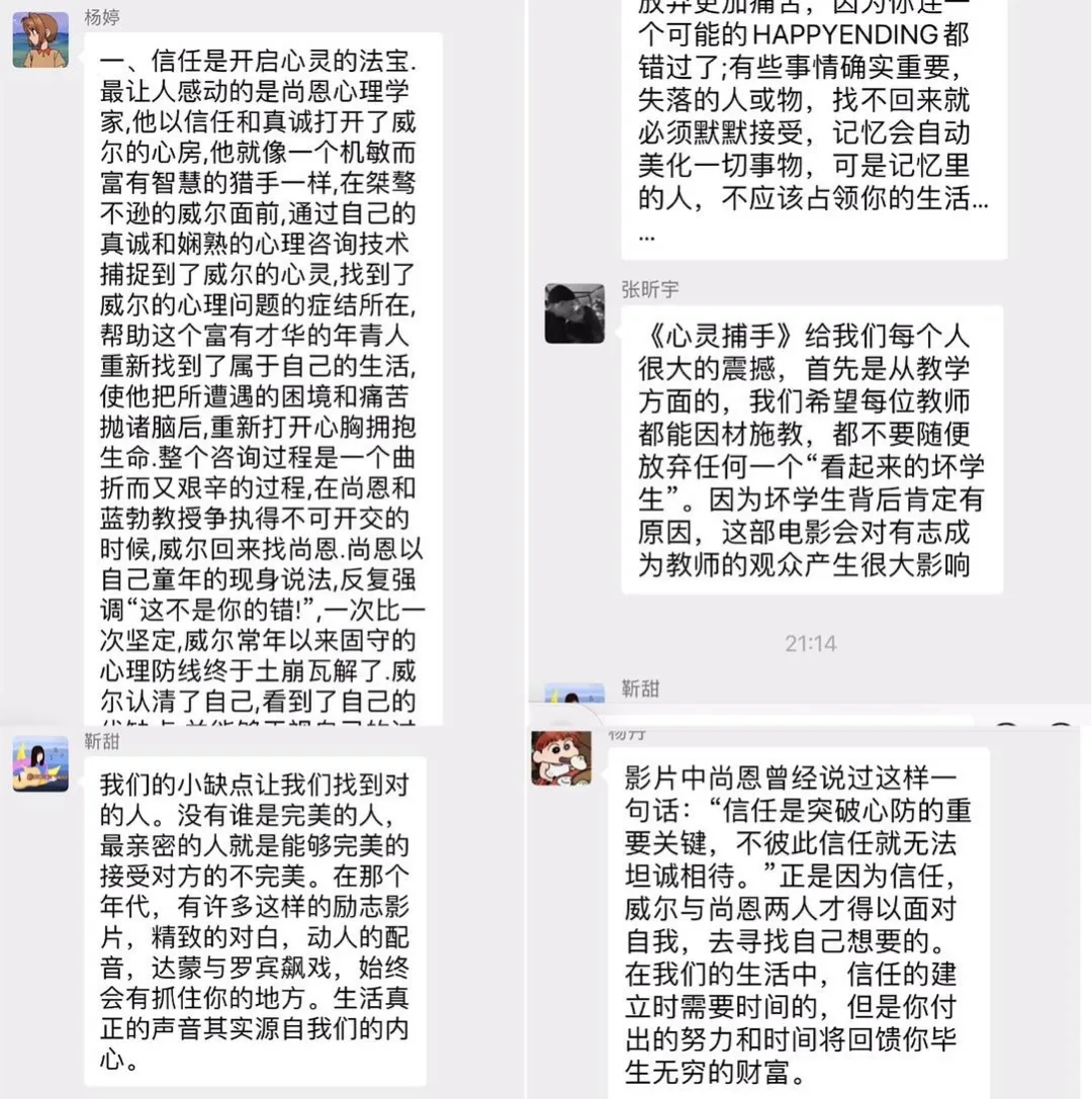 习近平总书记明确强调“动员各方面力量,全面加强心理疏导工作”,通过此次活动,同学们不仅在影片中舒缓了压力,缓解了由疫情带来的紧张情绪,还在交流讨论中敞开心扉,畅所欲言,提高了心理调控能力和防疫能力,为自己构筑了一道坚实且牢固的抗疫心理防线。