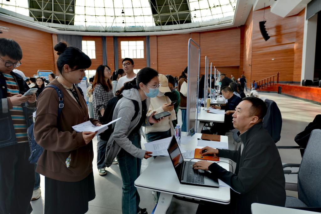 本次招聘会包括学校、培训机构、信息技术公司等50余家单位参与,提供就业岗位600余个,涉及教育、管理、汉语言文学、数学、英语等20多个专业,约1000多名毕业生到场询问岗位情况,与用人单位深度交流、沟通,并投递简历。