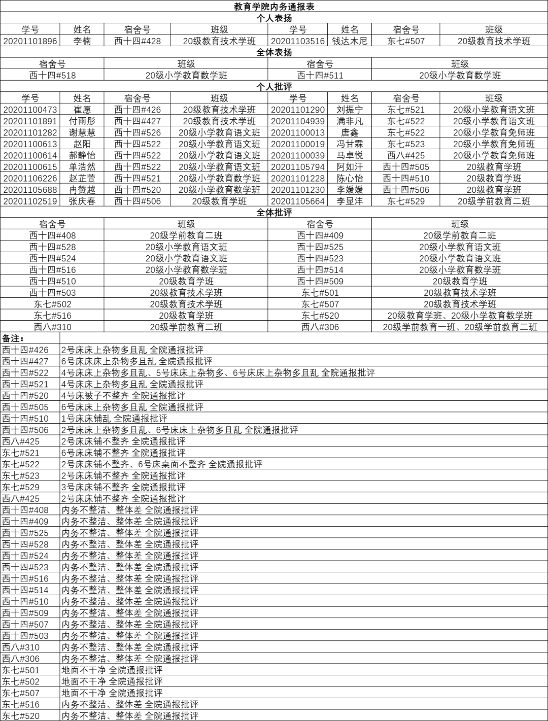 教育学院10月29日内务通报
