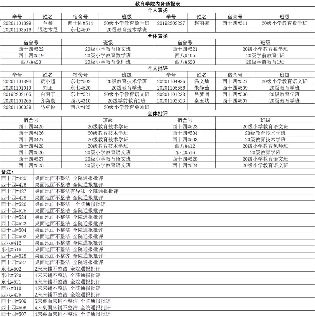 教育学院11月13日内务通报