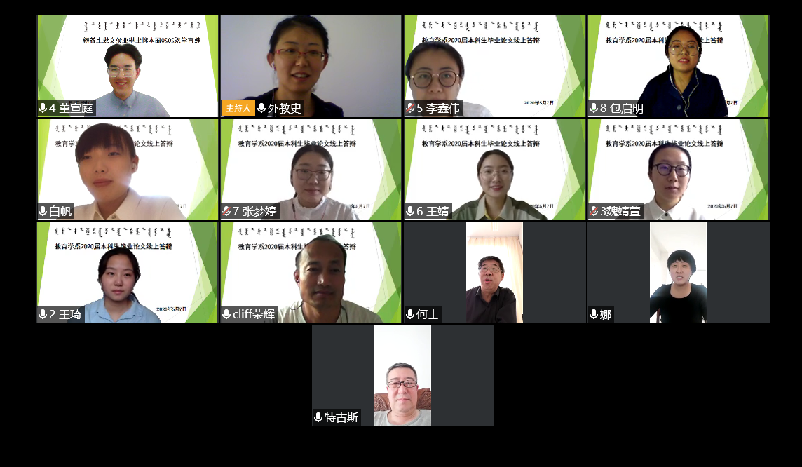 在答辩学生、答辩委员以及答辩秘书的密切配合下,此次线上论文答辩会顺利结束。教育学院的各位毕业生总结了大学的学习成果,也为自己的大学生活画上了圆满的句号。