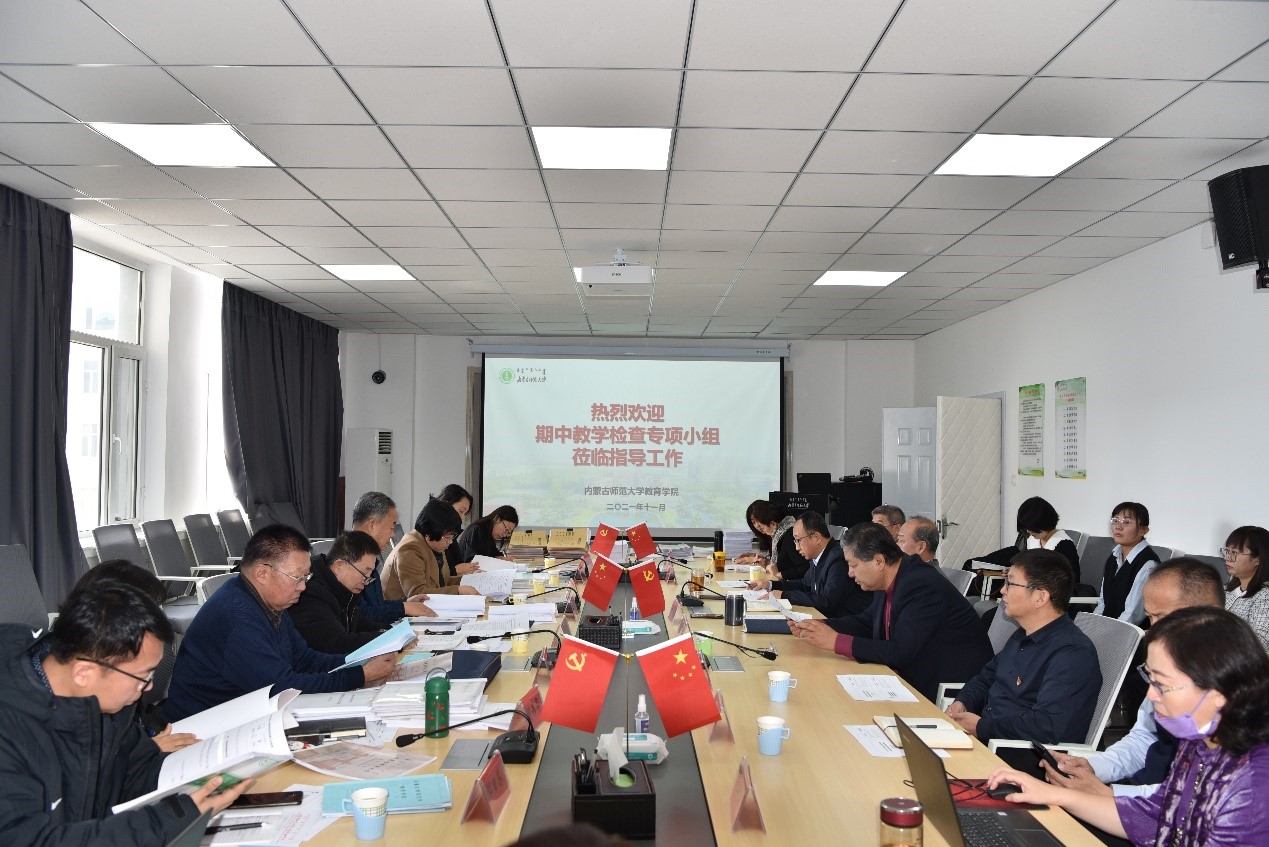 11月17日上午,我院在盛乐校区学院楼406会议室迎接2021-2022学年第一学期中教学检查工作。由徐宝芳教授带队的学校教学督导及各学院教学院长组成的检查组莅临我院进行本学期期中教学检查和指导工作,我院党政领导班子成员及各系系主任、学院督导、教务办工作人员参加会议。