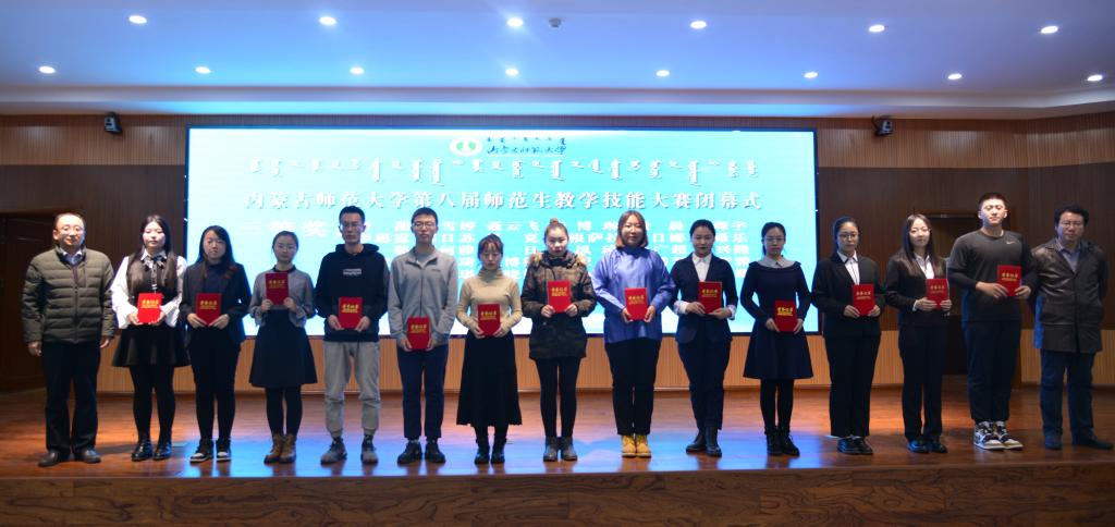 为适应新时代切实注重师范专业建设,加强师范生的创新精神和实践能力培养,提升师范生的教学技能,由教务处主办,我院承办的“内蒙古师范大学第八届师范生教学技能大赛”20191130日在盛乐校区举行。本次大赛分为即兴演讲、课件、模拟授课、回答问题、评委打分五个比赛环节,共有16个学院的20个师范专业的73名同学参加本次大赛,大赛邀请各参赛专业教法指导教师担任评委。