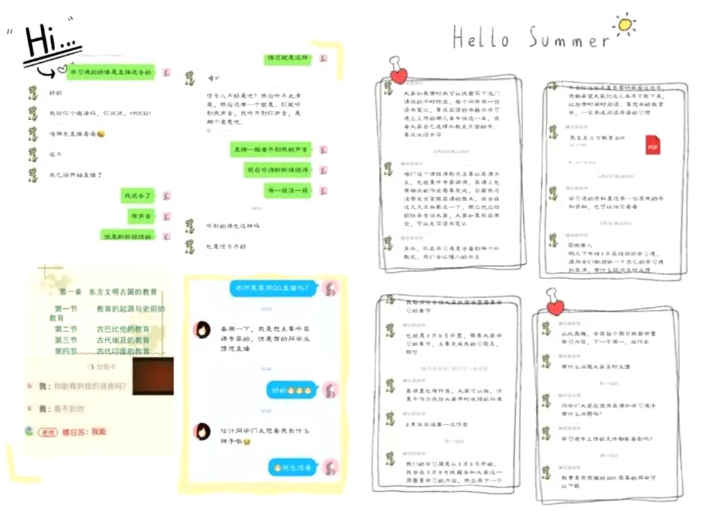 2020年春季学期的“开学”注定将记入学校史册,教育学院在学校党委疫情防控的精神下,认真落实教务处“停课不停学”要求,学院本学期开设的近百门课程的授课教师在近一个月里,进行课程设计、资源准备、平台选择、网络搭建等,随着39日的临近,网络课程也将正式启用。俗语讲“是骡子是马,拉出来遛遛!”,本周老师们都开始了进行测试,同时完成课程的“第一课”。学院以“学生为中心”的理念,对学生学习进行跟踪、访谈,以此来保障网络教学质量。下面听听他们对学习、对教师、对自己有些什么想说的......