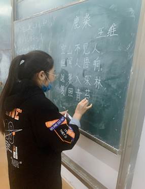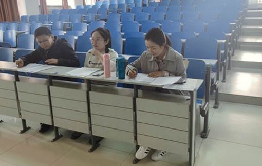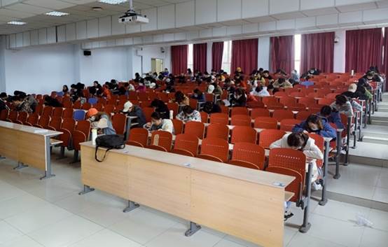粉笔字考试在多媒体教室进行,学生在教室黑板书写,候场区抽取考试题目,按序进入考场,书写抽到题目,现场评分,每组5人,考试时间5分钟。