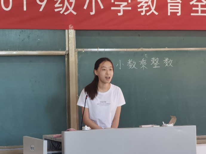 在课堂模拟训练展示环节,张雯和李俊两位同学分别展示了五年级数学《小数乘整数》和五年级语文《慈母情深》的教学过程。两位同学以亲切的教态、自然的互动,流畅的教学过程,展示了他们实训模拟的成果。