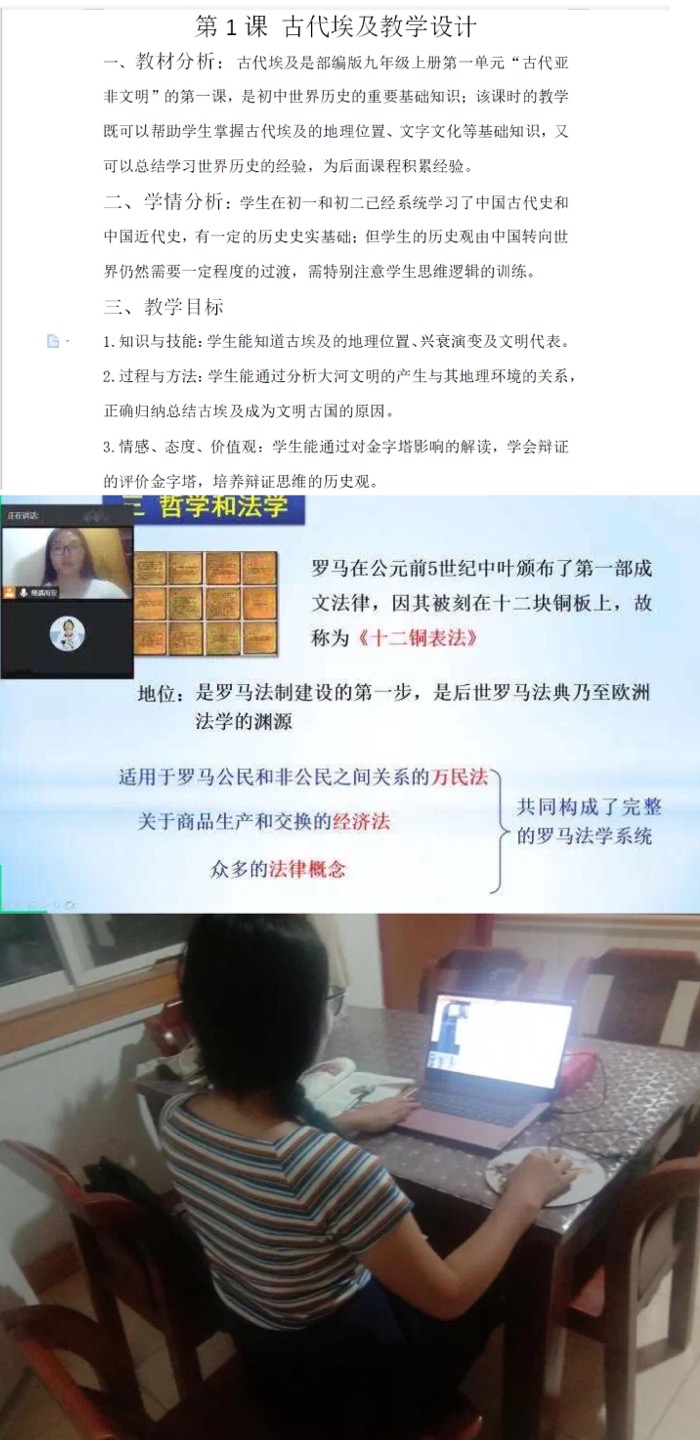 我很荣幸能够参加教育学院暑期“云端三下乡”活动,成为教学实施组的一名志愿者。我辅导的科目是初三历史,主要讲解了“古代亚非文明”和“古代欧洲文明”。三名学生的性格和历史基础情况等不同,因此在备课和讲课过程中,我针对性的改变教学节奏和题目难度等,做到因材施教。由于历史学科强调培养学生的学科素养和分析能力,因此在讲课过程中我选择运用大量的图片和思维框架调动学生的学习兴趣,促进学生系统的掌握知识点。