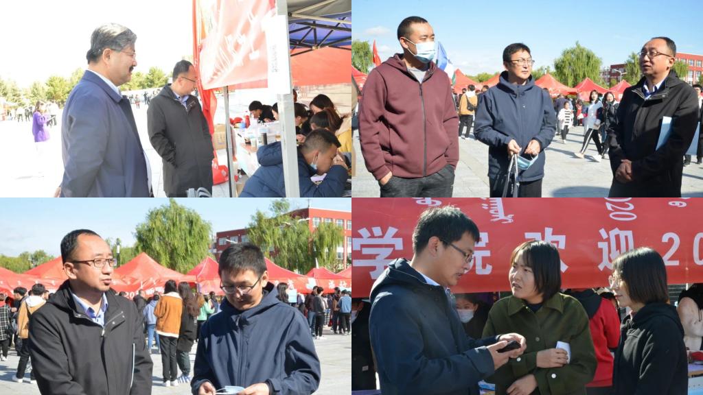 铁木尔书记,米俊魁院长,斯琴满都呼副书记、副院长,边琦副院长,赵荣辉副院长,学工组于国佳老师,团总支负责人孙悦老师,辅导员张玉老师,辅导员苏日娜老师及新生班主任到迎新现场指导工作并慰问迎新导员与志愿者。