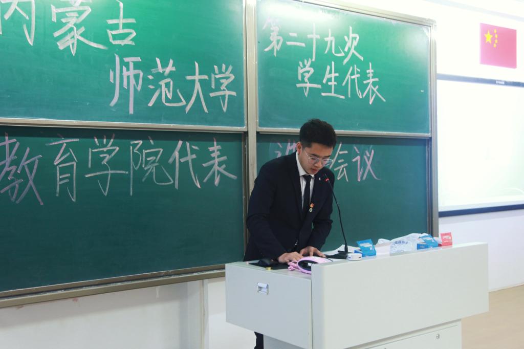 大会第一项议程:赵重阳同学宣读《内蒙古师范大学第二十九次学生代表大会代表选举办法》。
