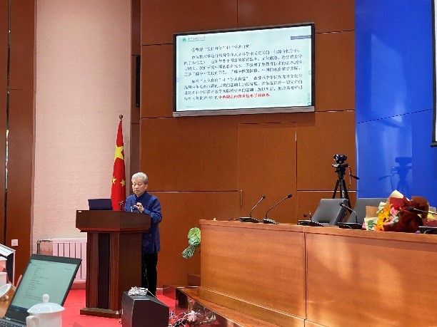 研讨会的后半程主要以“李龙教授从教六十载”为主题。KY.COM党委书记铁木尔同志代表学院向李龙教授赠送纪念品和鲜花,祝贺李龙教授从教六十年,感谢李龙教授为内蒙古师范大学教育技术学的发展做出的突出贡献。中国教育技术协会原秘书长、中央电化教育馆学术委员会主任刘雍潜研究员以“我所认识的李龙”为题通过远程视频形式发言。他认为李龙教授是一位和协会同仁打成一片的长者、是群众性科研活动的带头人、是“做冷板凳”的专家、是“山药蛋派”的学者、是教育技术史学的开创者,教育技术界正是有因为有了李龙这样的一批大专家大学者,才使我们的事业薪火传递,代代不熄。