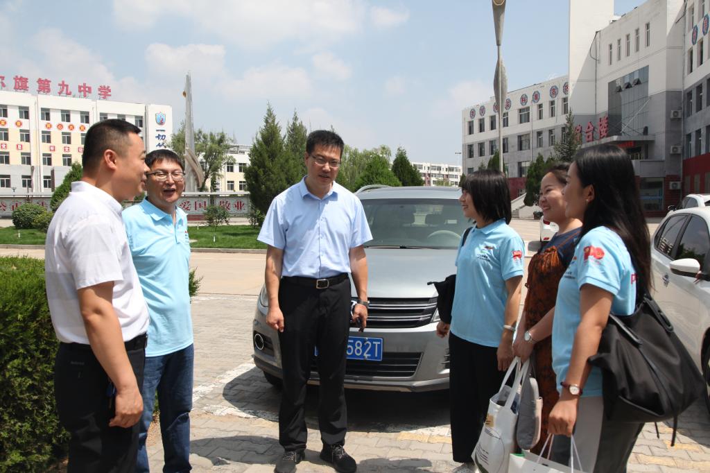 经过将近两个小时的车程,我们最终到达准格尔旗第九中学,学校领导热情地迎接志愿者老师们及学生们的到来。