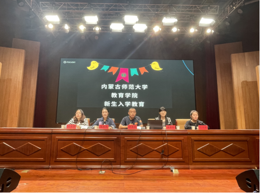 9月22日,教育学院面向2022级本科生、研究生以及专升本同学在图书馆二楼报告厅召开入学教育系列活动—教务与学工管理,教务办主任李嘉峪、团学辅导员于国佳、苏日娜、胡建芳、乌亚汗出席大会,会议由于国佳主持。
