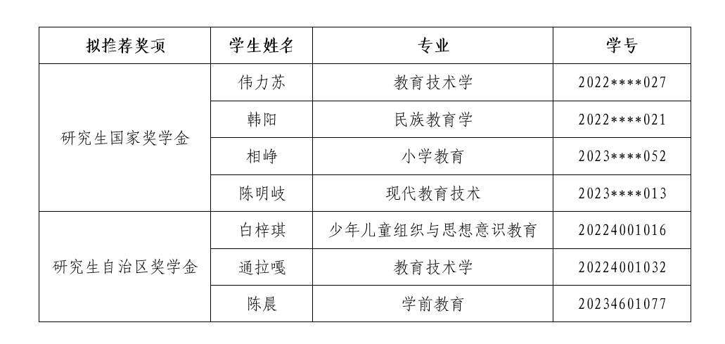 依据《内蒙古师范大学研究生奖学金评选办法》(校发[2022]54号)和《关于做好2024年度研究生各类奖学金评审及材料报送工作的通知》文件精神,经过学生申请、班级推荐以及学院公开答辩,拟推荐以下学生分别申报研究生国家奖学金和研究生自治区奖学金。