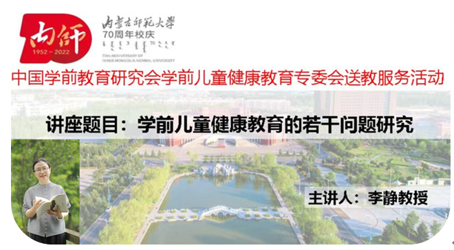 2022622日上午,特邀西南大学教育学部学前教育学院院长、博士生导师,中国学前教育研究会健康教育专业委员会主任李静教授进行了《学前儿童健康教育的若干问题研究》线上直播讲座,由朱晓红教授任主持人,我院师生以及兴安盟职业院校等自治区内其他院校,以及呼和浩特市、扎兰屯市等部分幼儿园园长和教师参加。